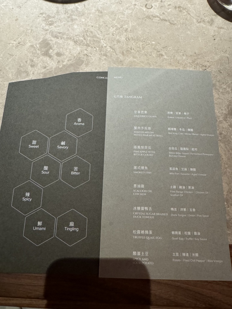 總共七道 分別想傳遞七種味道包含香 鹹 甜 酸 苦 辣 鮮 麻
